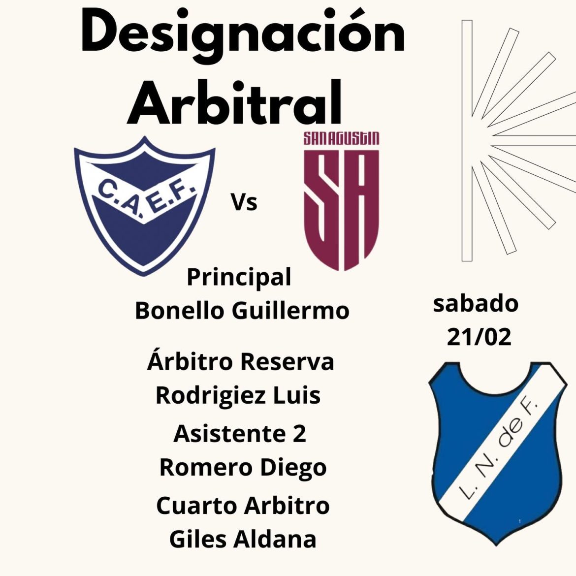 Guillermo Bonello será el árbitro principal; como árbitro de Reserva estará Luis Rodríguez; el asistente segundo, Diego Romero y como cuarta árbitra, Aldana Giles.