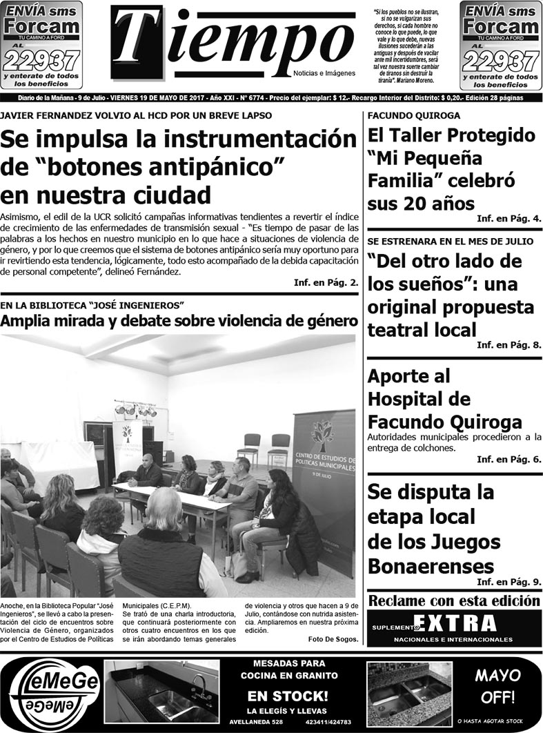 Edición impresa del día viernes 19 de mayo de 2017