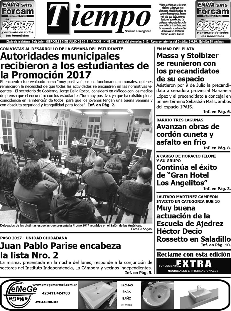 Edición impresa del día miércoles 5 de julio de 2017
