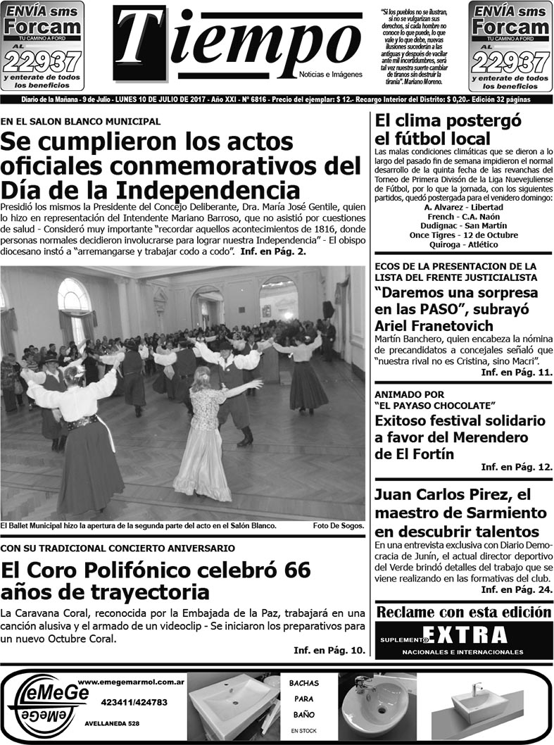 Edición impresa del día lunes 10 de julio de 2017
