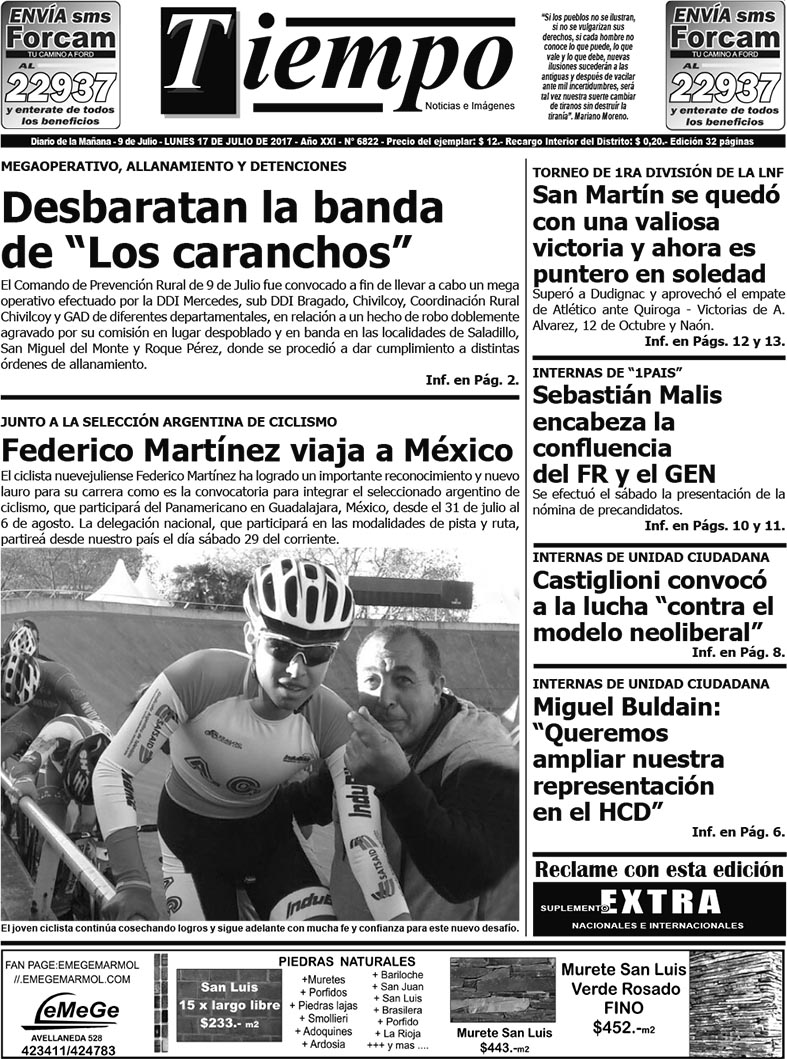 Edición impresa del día lunes 17 de julio de 2017