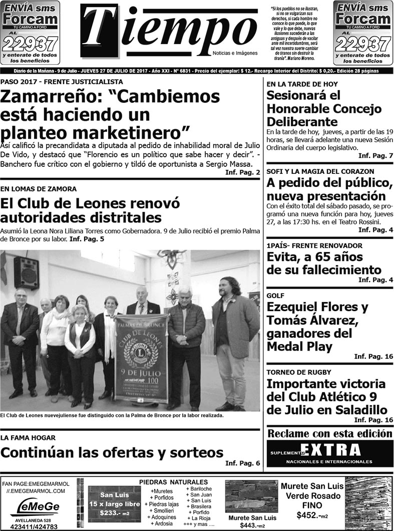 Edición impresa del día jueves 27 de julio de 2017