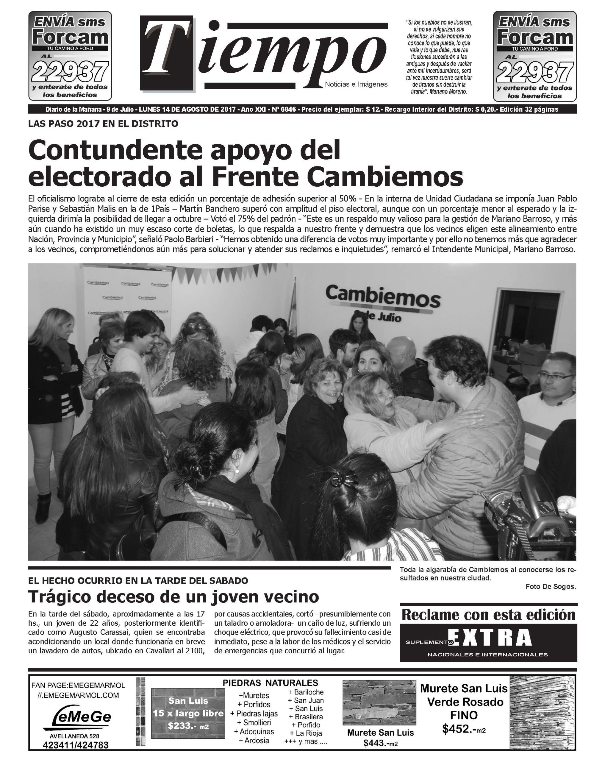 Edición impresa del día lunes 14 de agosto de 2017