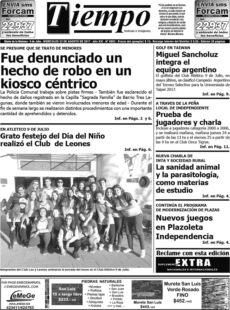 Edición impresa del día miércoles 23 de agosto de 2017