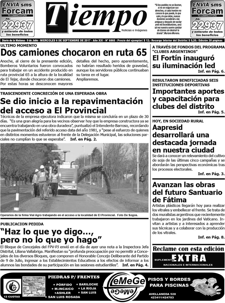 Edición impresa del día miércoles 6 de septiembre de 2017