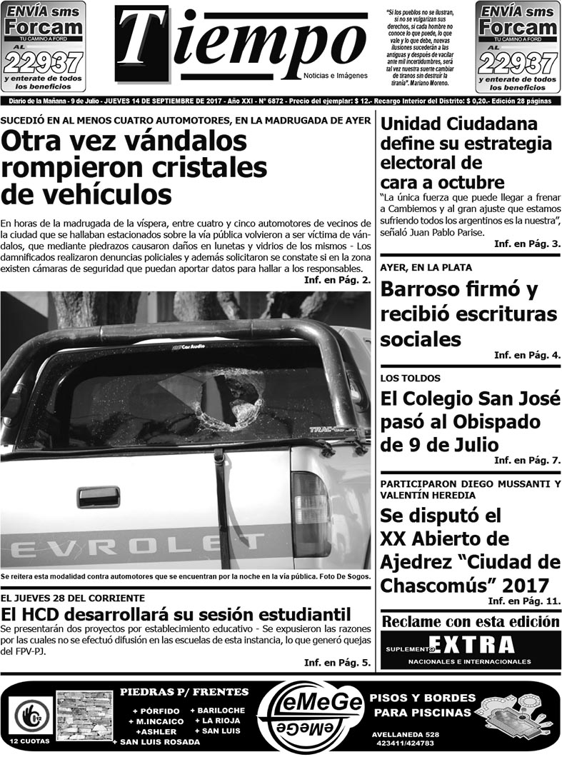 Edición impresa del día jueves 14 de septiembre de 2017