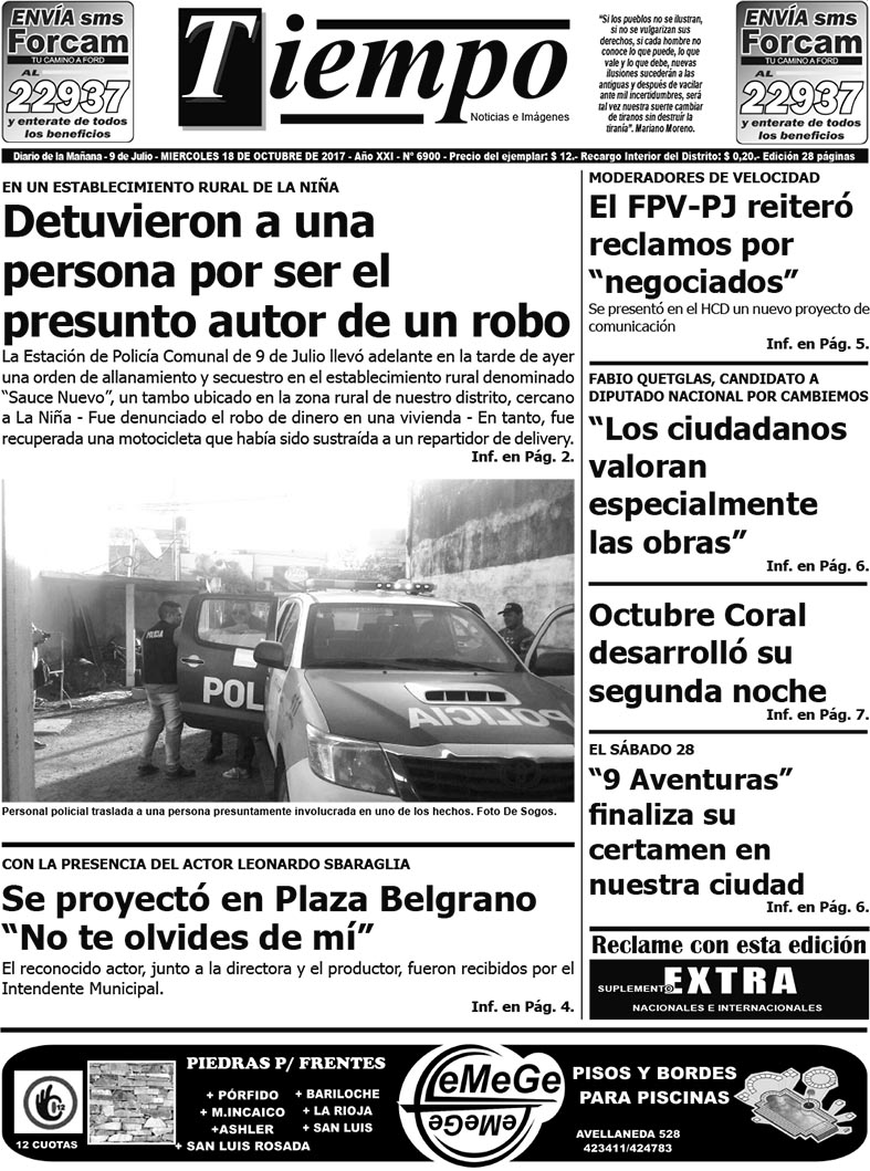 Edición impresa del día miércoles 18 de octubre de 2017