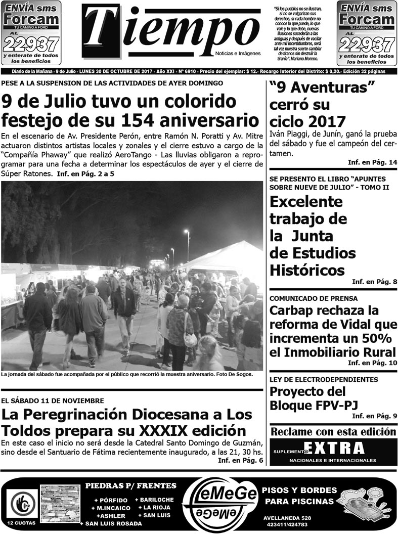 Edición impresa del día lunes 30 de octubre de 2017