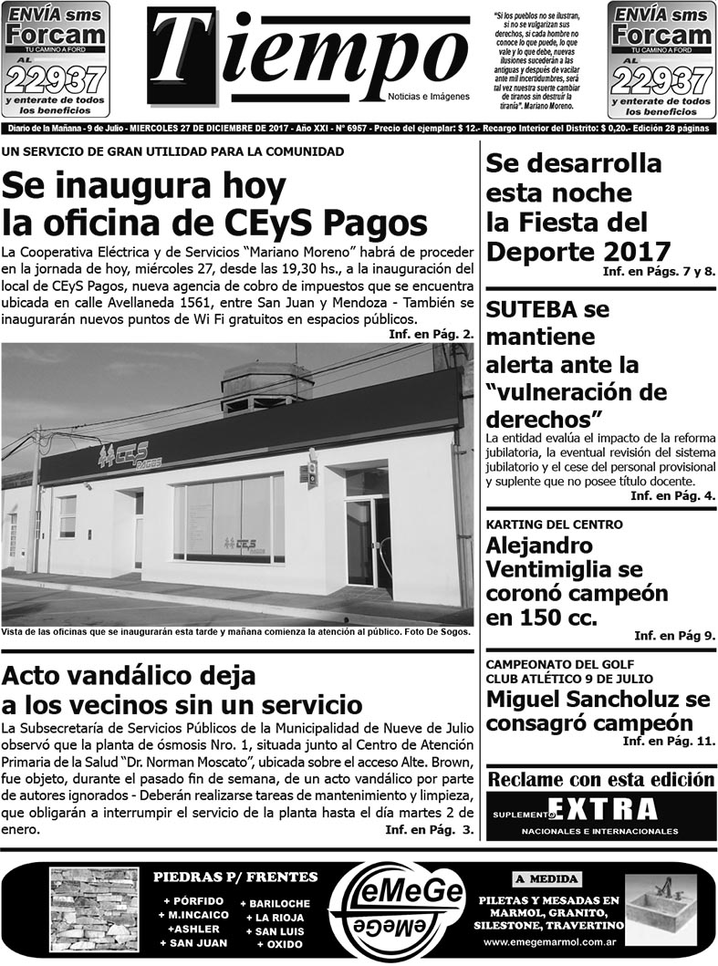 Edición impresa del día miércoles 27 de diciembre de 2017