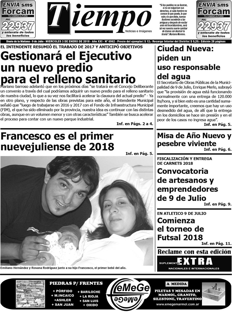 Edición impresa del día miércoles 3 de enero de 2018