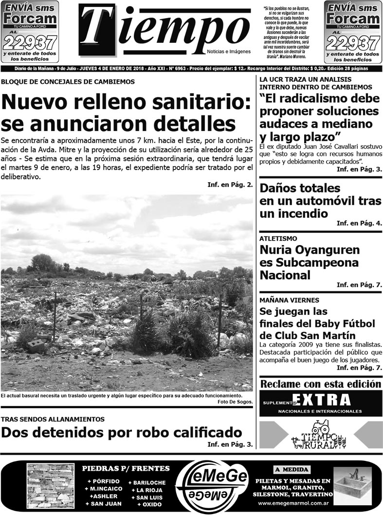 Edición impresa del día jueves 4 de enero de 2018