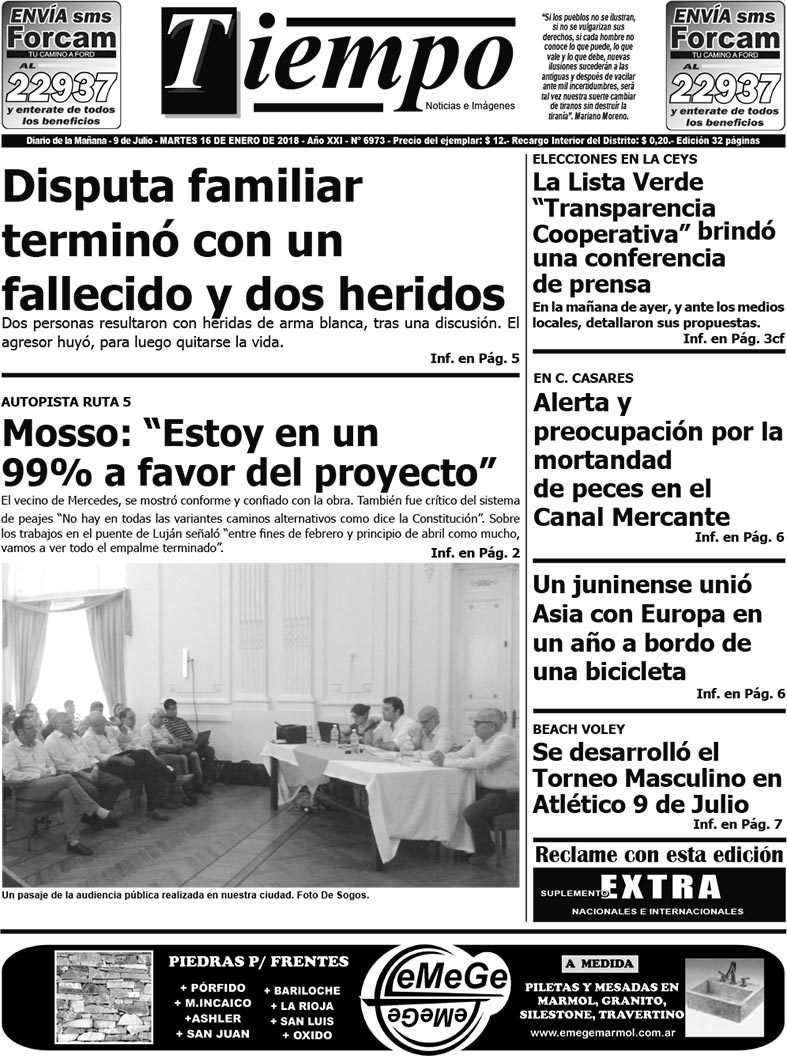 Edición impresa del día martes 16 de enero de 2018
