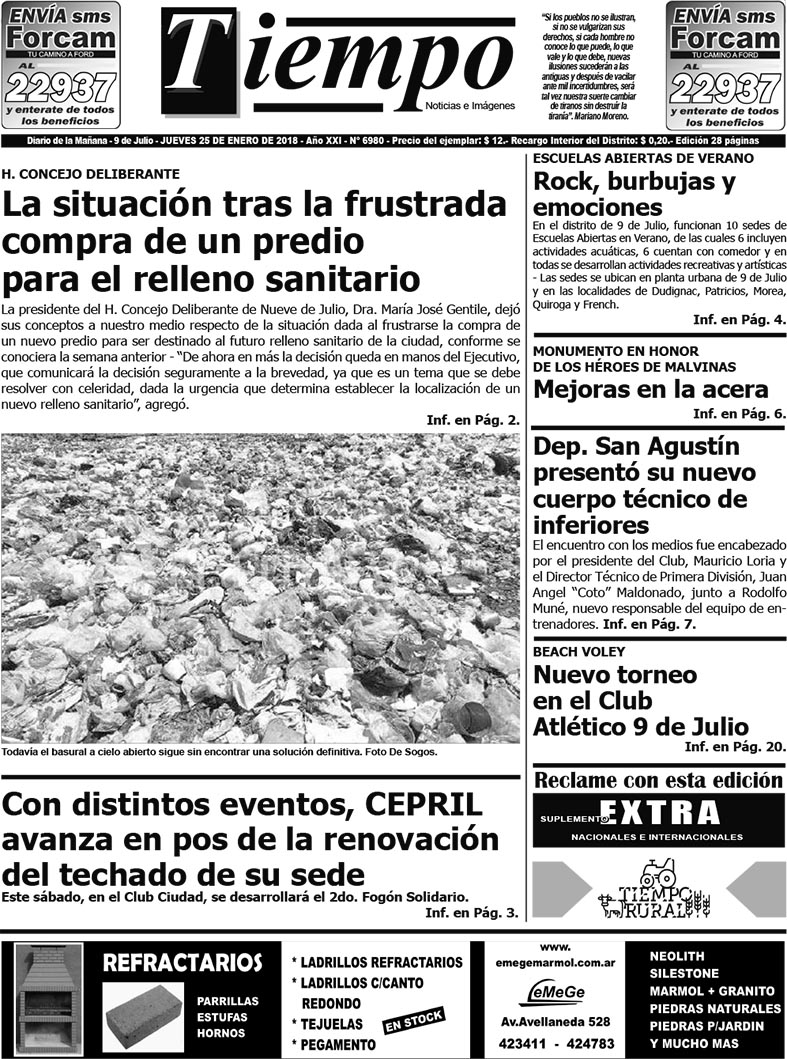 Edición impresa del día jueves 25 de enero de 2018
