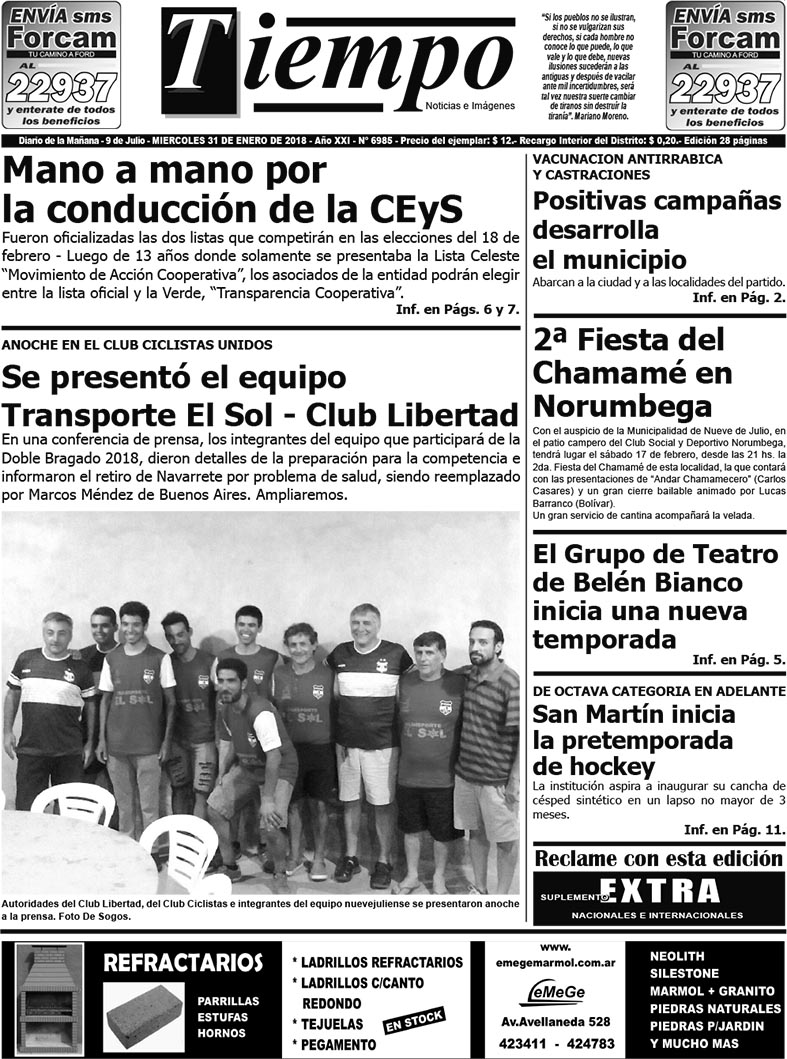 Edición impresa del día miércoles 31 de enero de 2018