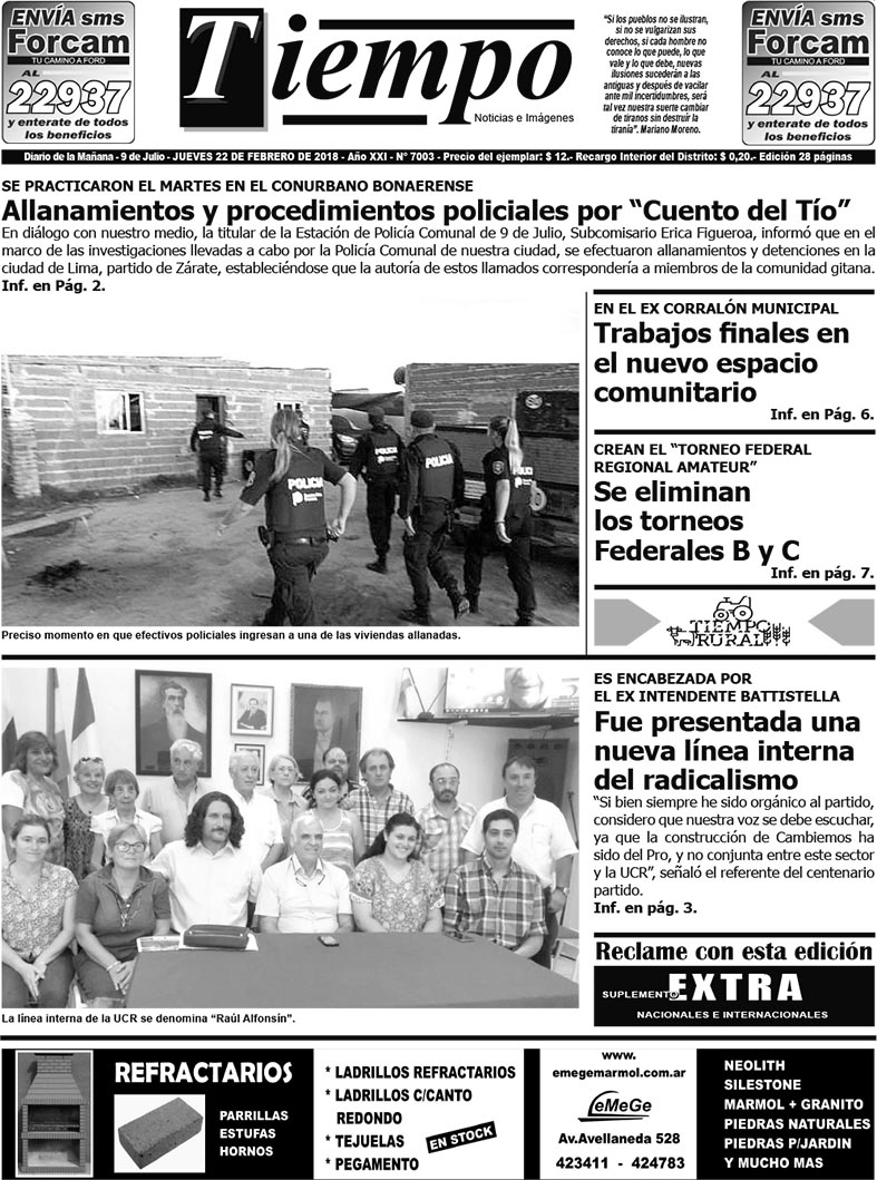 Edición impresa del día jueves 22 de febrero de 2018