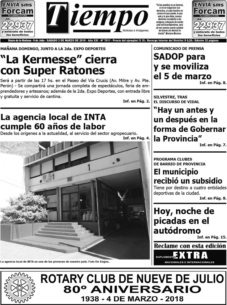 Edición impresa del día sábado 3 de marzo de 2018