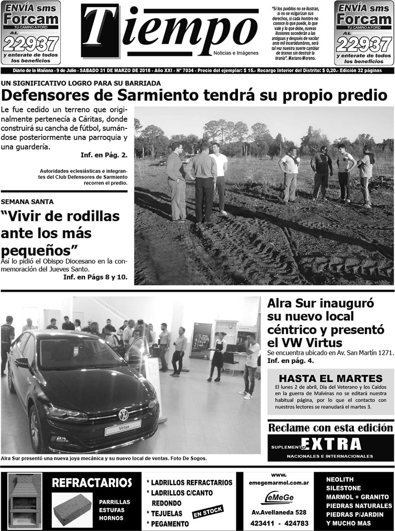 Edición impresa del día sábado 31 de marzo de 2018