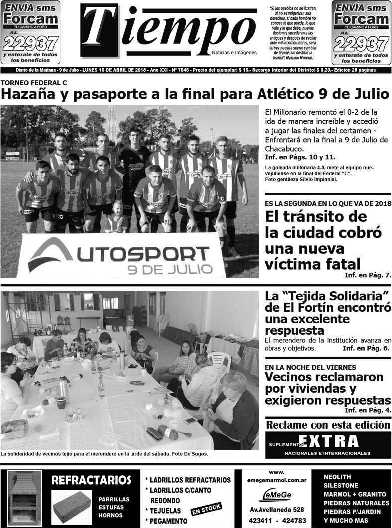 Edición impresa del día lunes 16 de abril de 2018