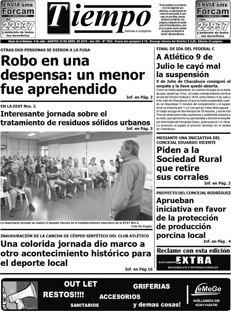 Edición impresa del día martes 24 de abril de 2018