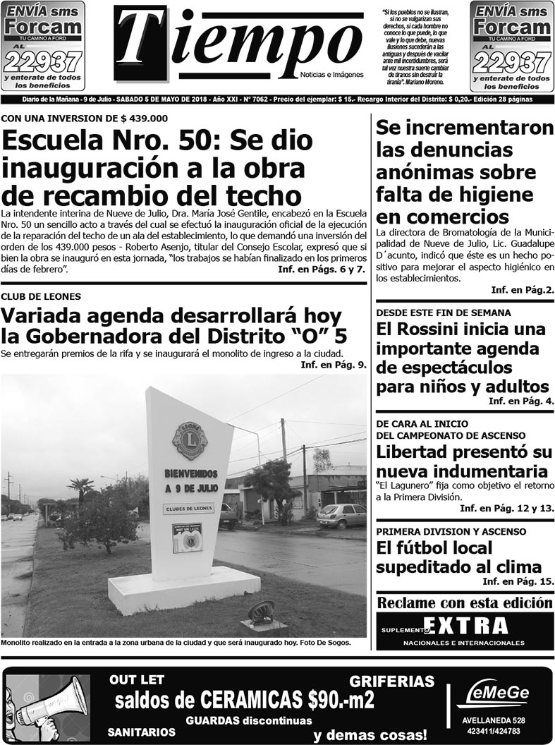 Edición impresa del día sábado 5 de mayo de 2018