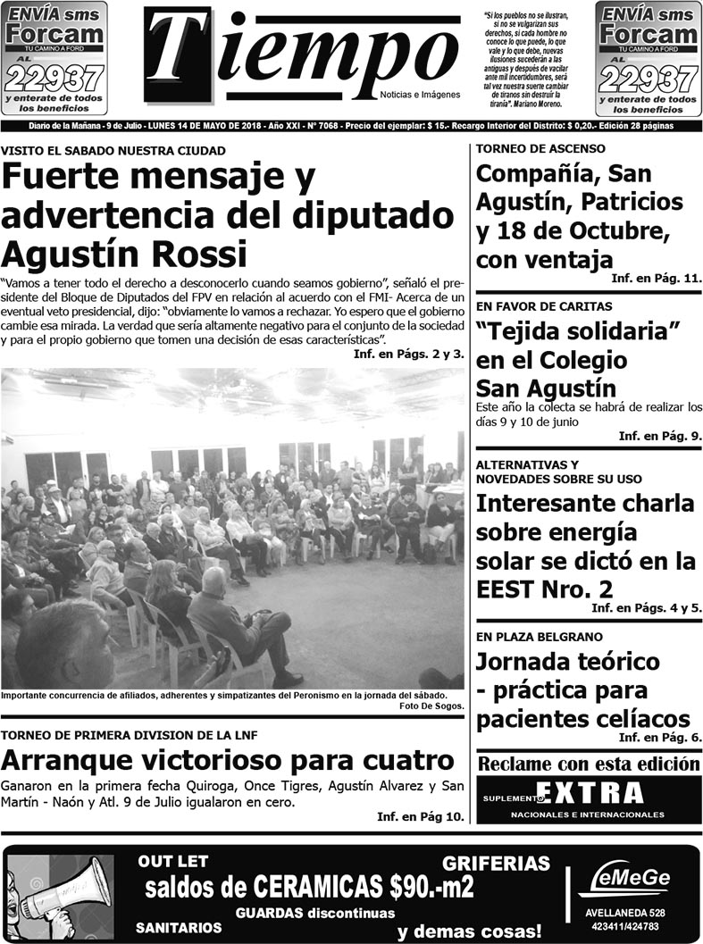 Edición impresa del día lunes 14 de mayo de 2018