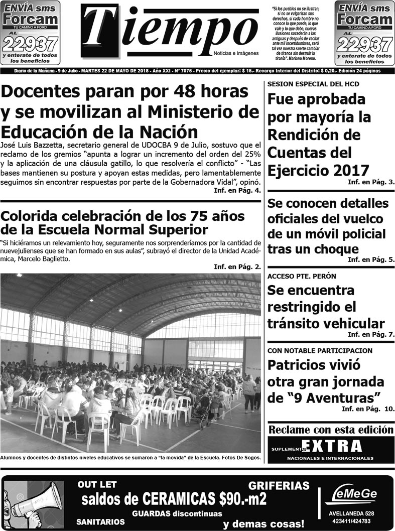 Edición impresa del día martes 22 de mayo de 2018