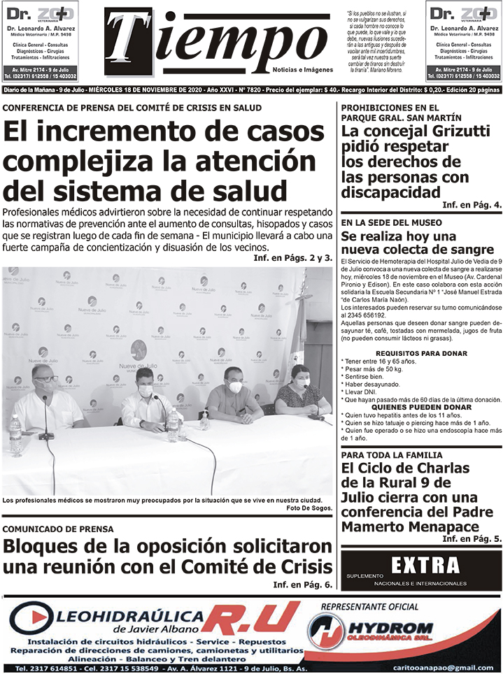 Edición impresa del día miércoles 18 de noviembre de 2020