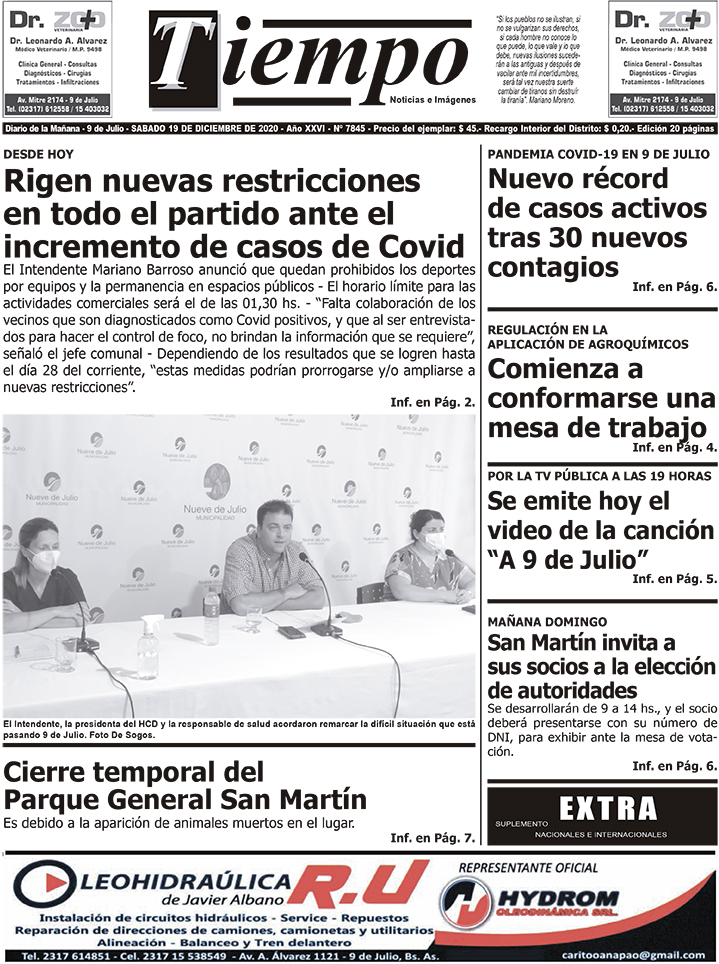 Edición impresa del día sábado 19 de diciembre de 2020