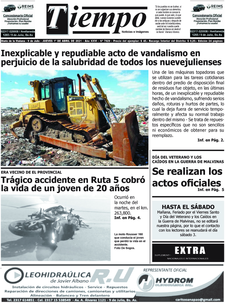 Edición impresa del día jueves 1 de abril de 2021