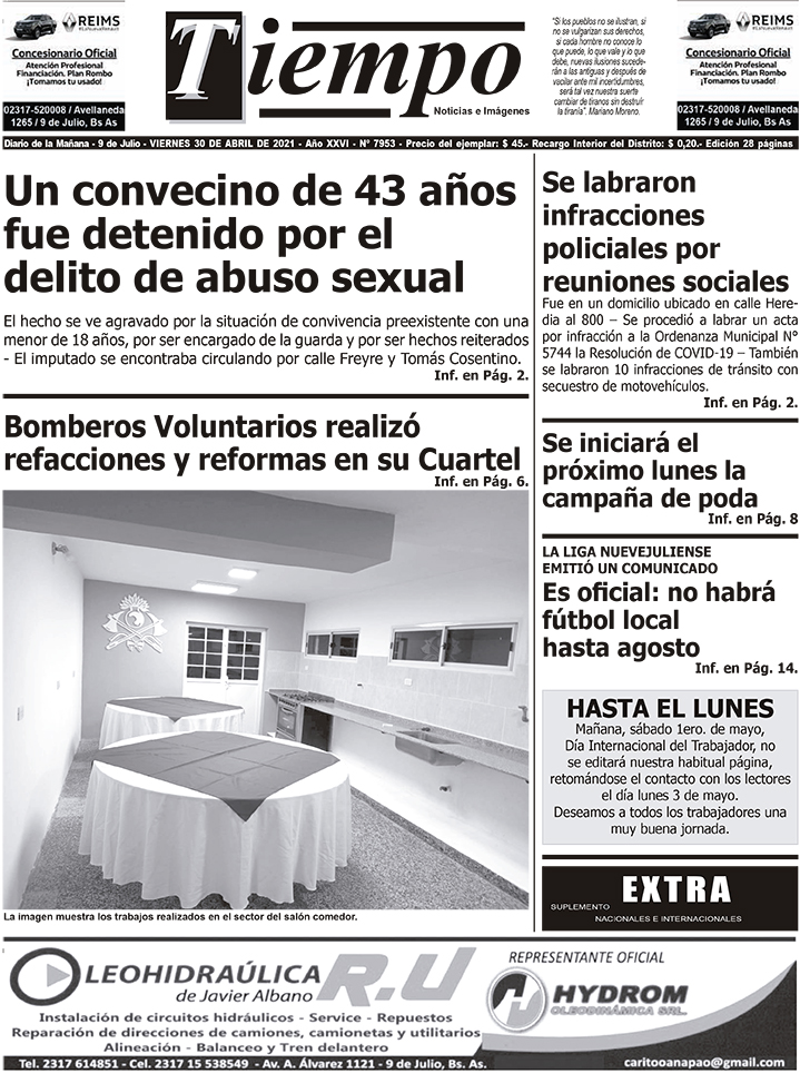 Edición impresa del día viernes 30 de abril de 2021