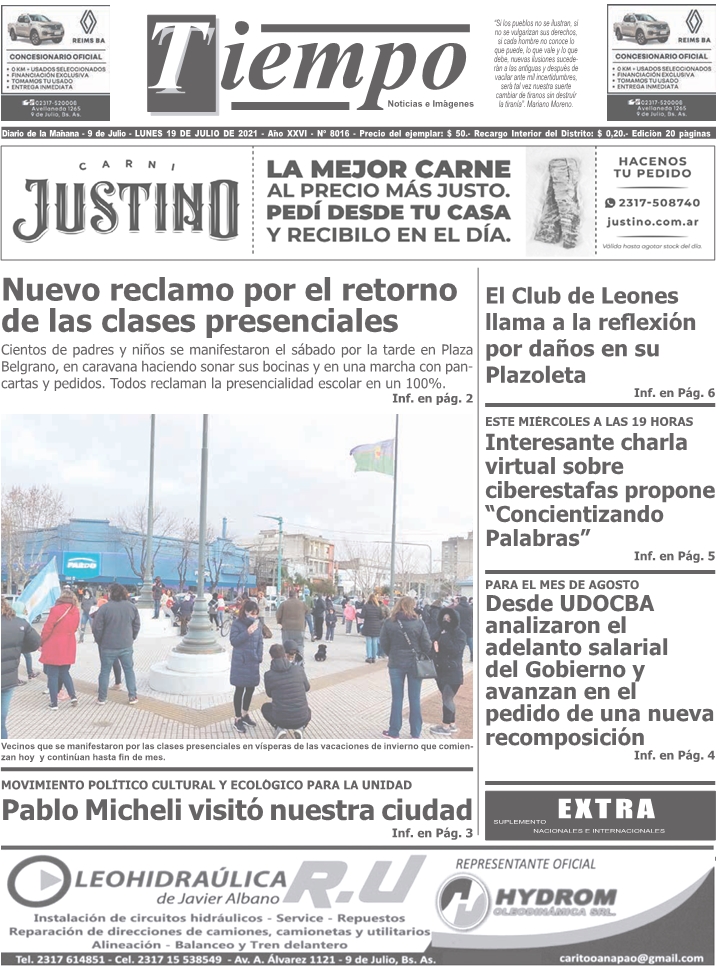 Edición impresa del día lunes 19 de julio de 2021