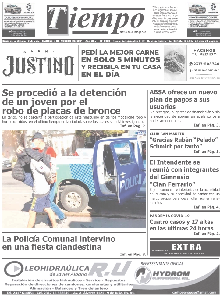 Edición impresa del día martes 3 de agosto de 2021