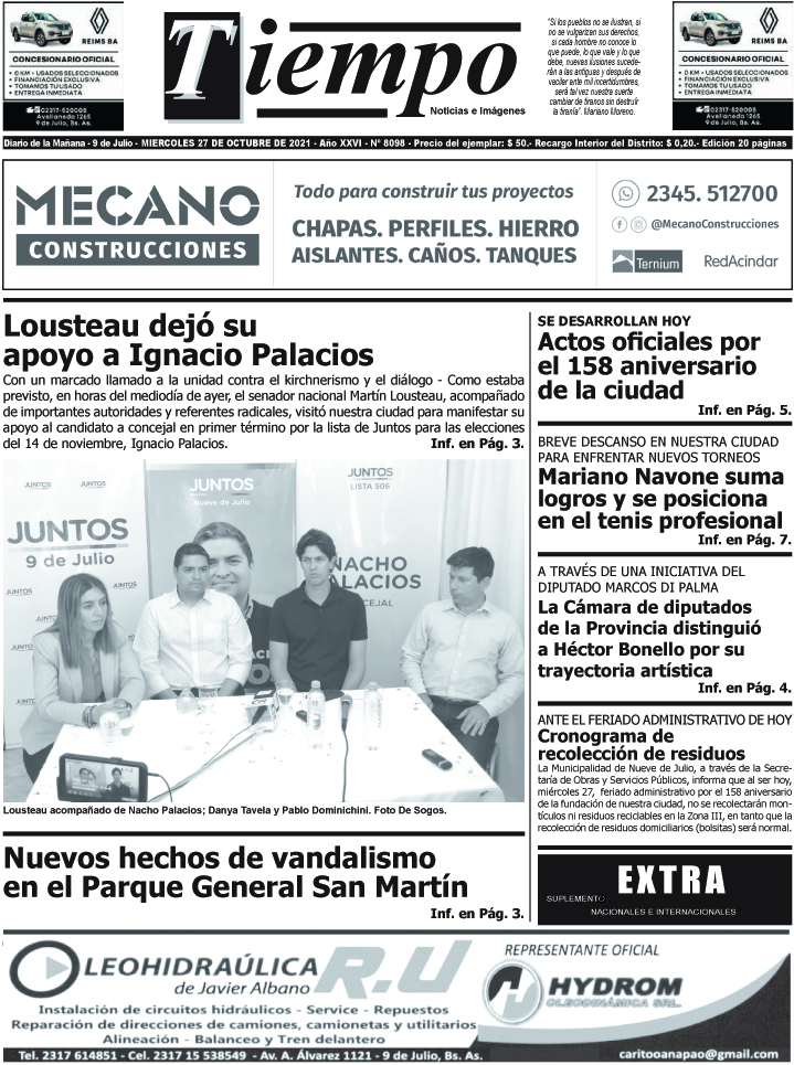 Edición impresa del día miércoles 27 de octubre de 2021