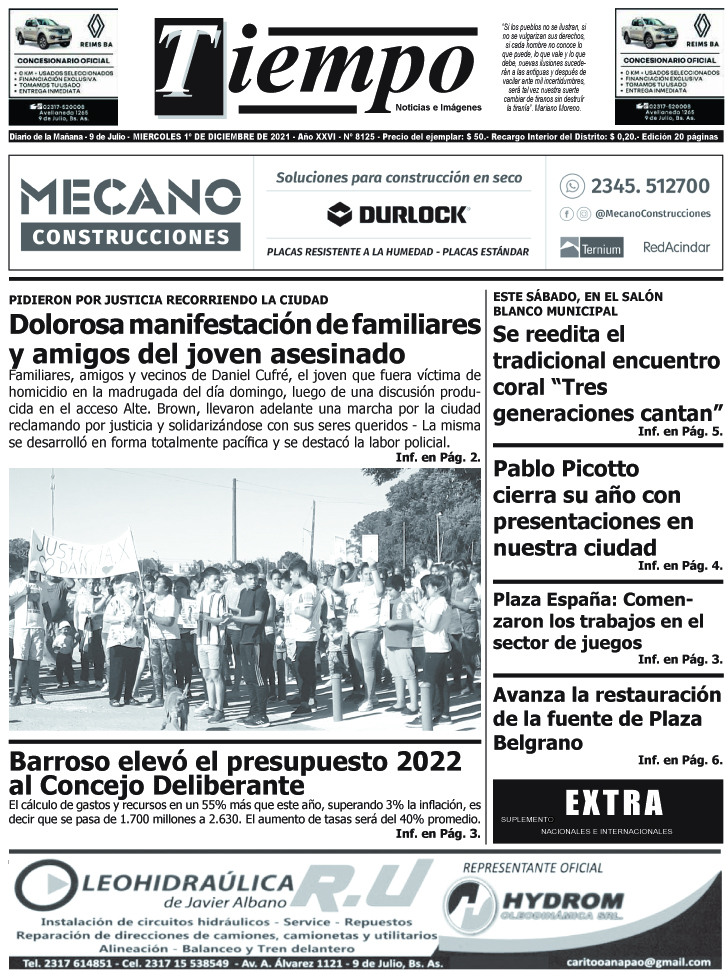 Edición impresa del día miércoles 1 de diciembre de 2021