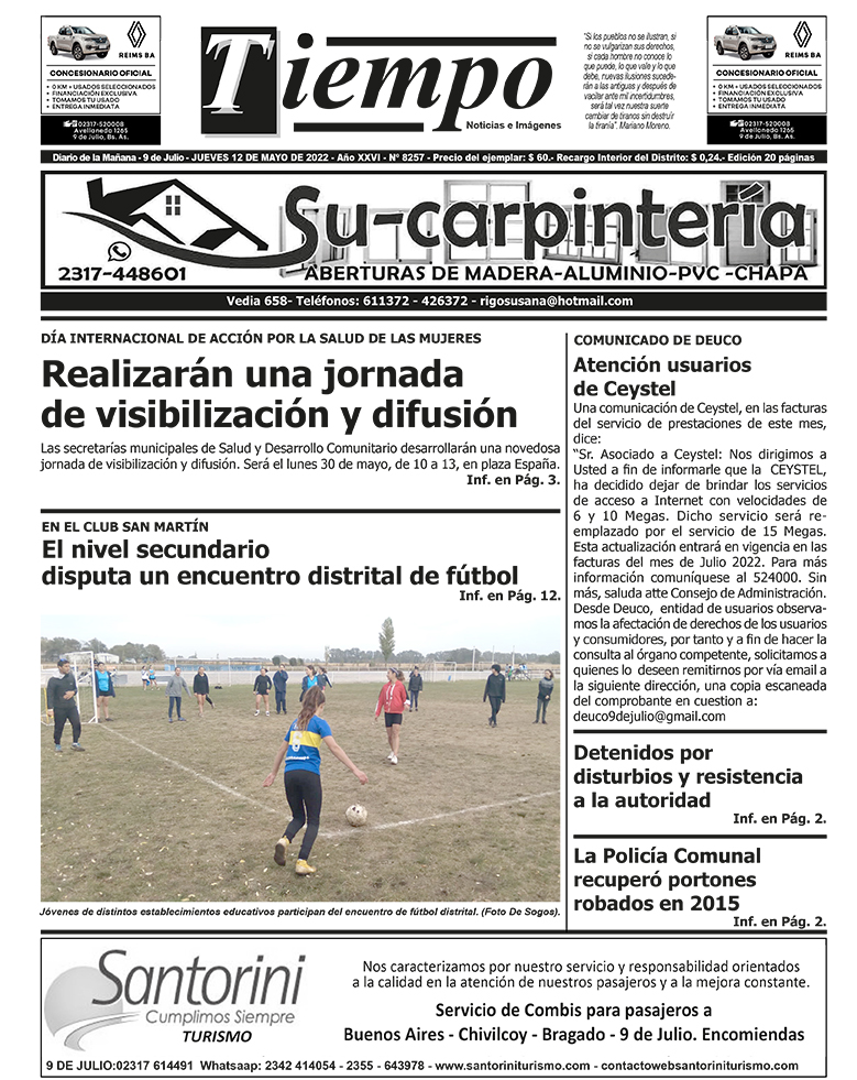 Edición impresa del día jueves 12 de mayo de 2022