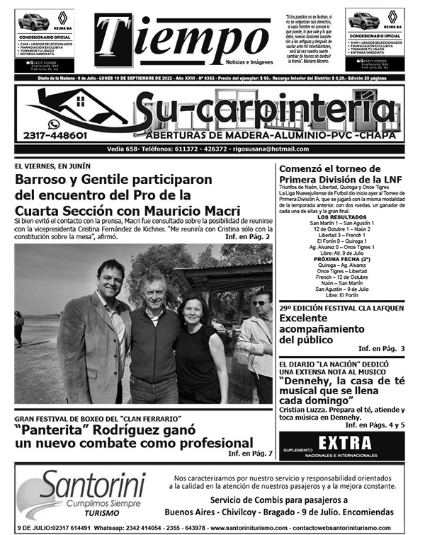 Edición impresa del día lunes 19 de septiembre de 2022