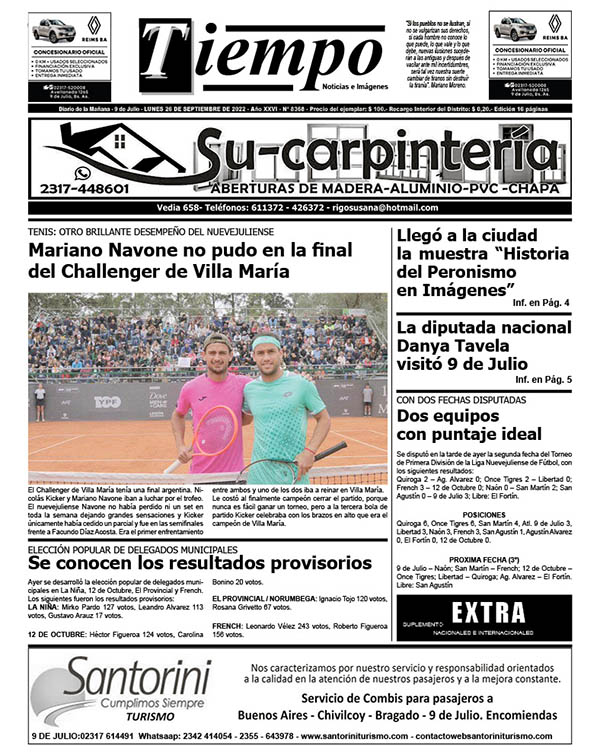 Edición impresa del día lunes 26 de septiembre de 2022