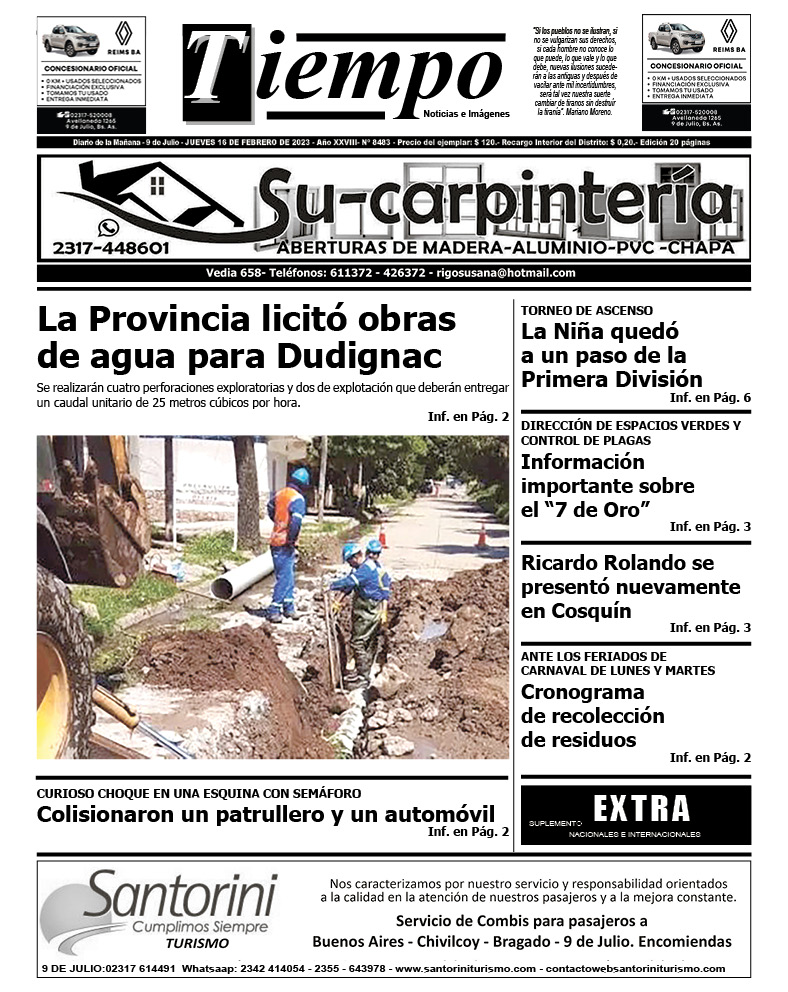 Edición impresa del día jueves 16 de febrero de 2023