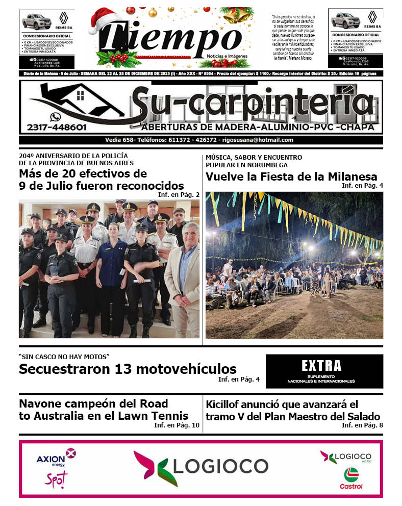 Edición impresa del día lunes 22 de diciembre de 2025