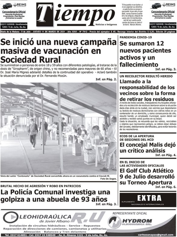 Edición impresa del día jueves 11 de marzo de 2021