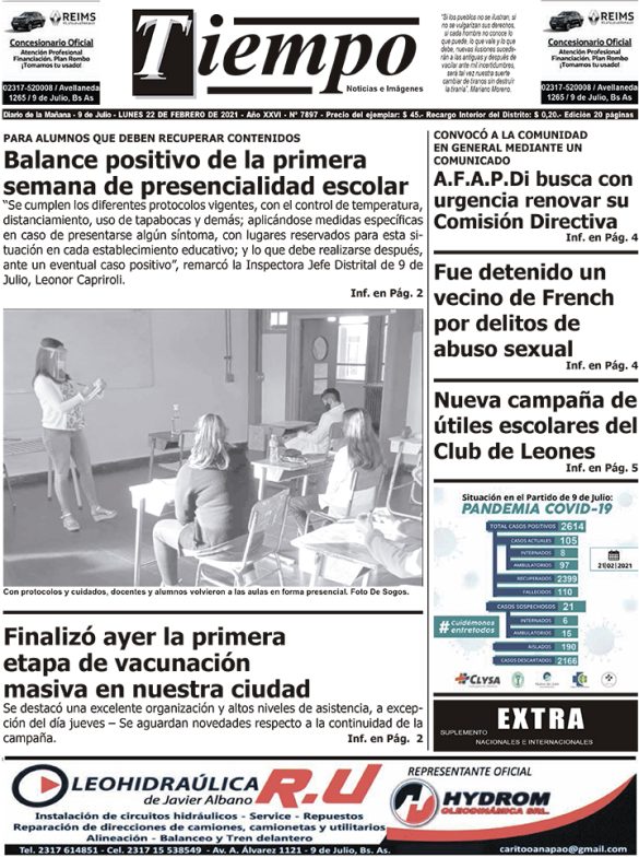 Edición impresa del día lunes 22 de febrero de 2021