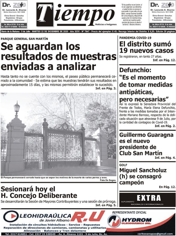 Edición impresa del día martes 22 de diciembre de 2020