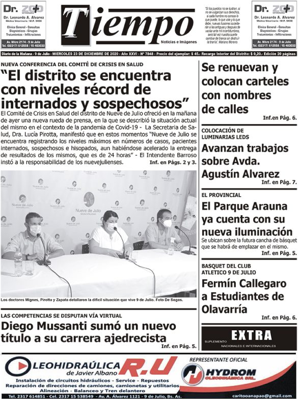 Edición impresa del día miércoles 23 de diciembre de 2020