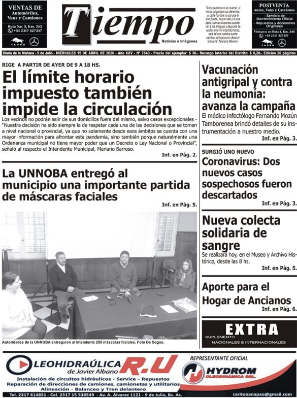 Edición impresa del día miércoles 15 de abril de 2020