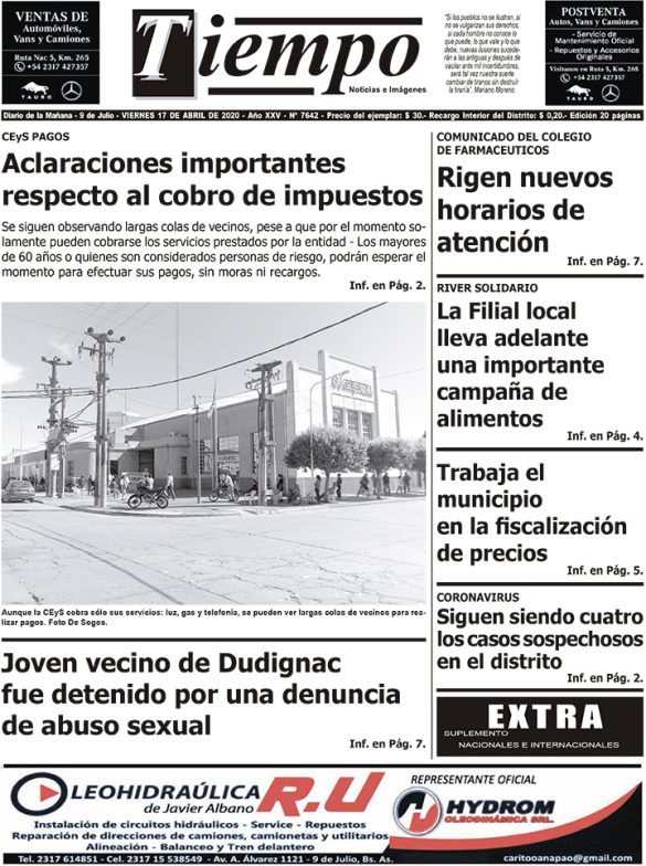 Edición impresa del día viernes 17 de abril de 2020