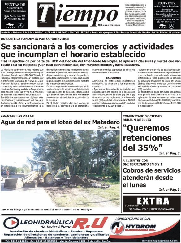 Edición impresa del día sábado 18 de abril de 2020