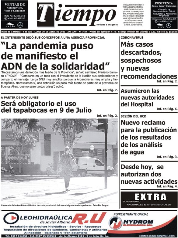 Edición impresa del día lunes 20 de abril de 2020