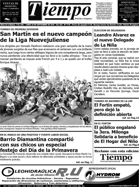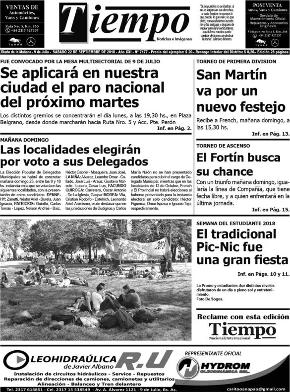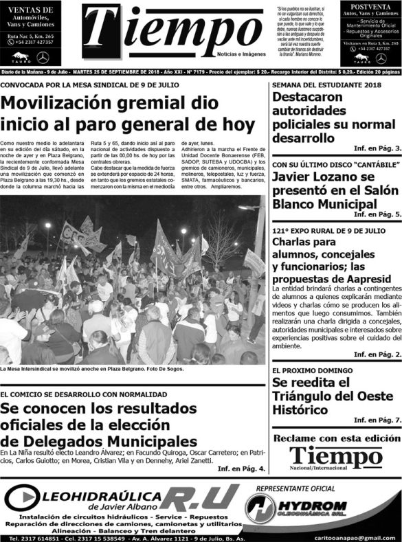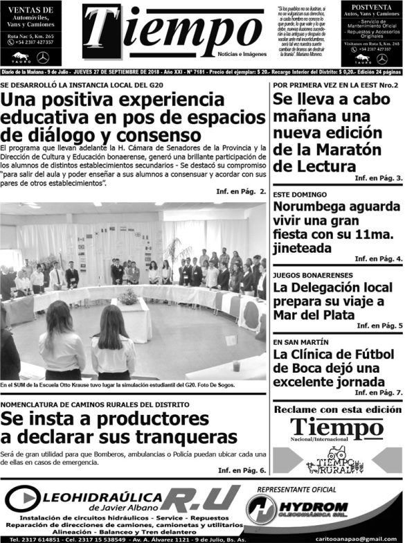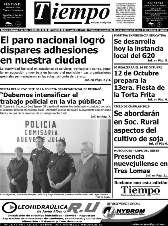 Edición impresa del día miércoles 26 de septiembre de 2018