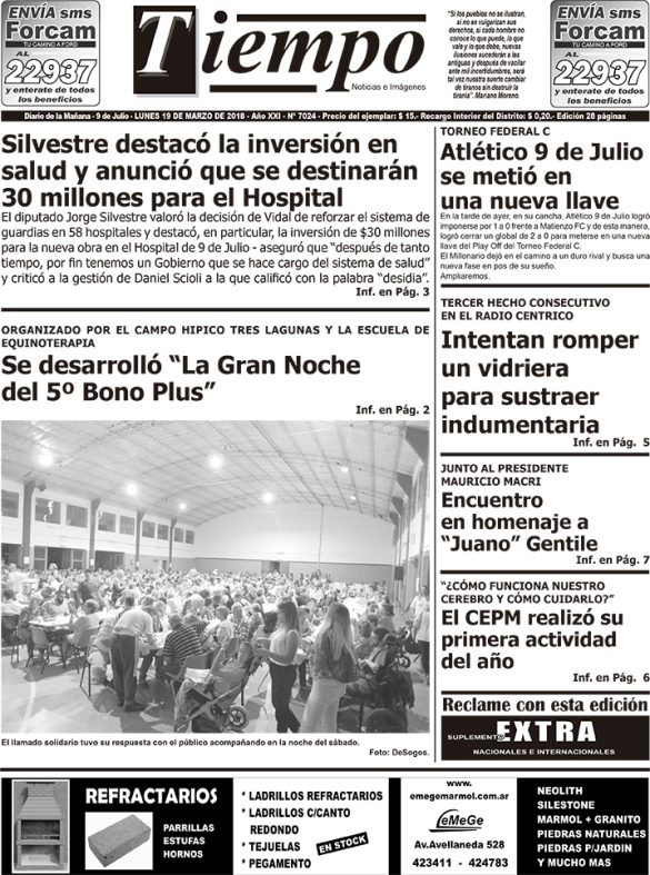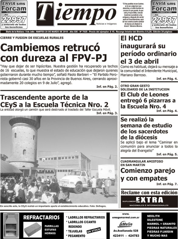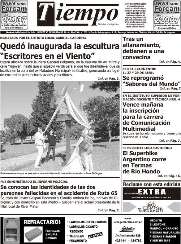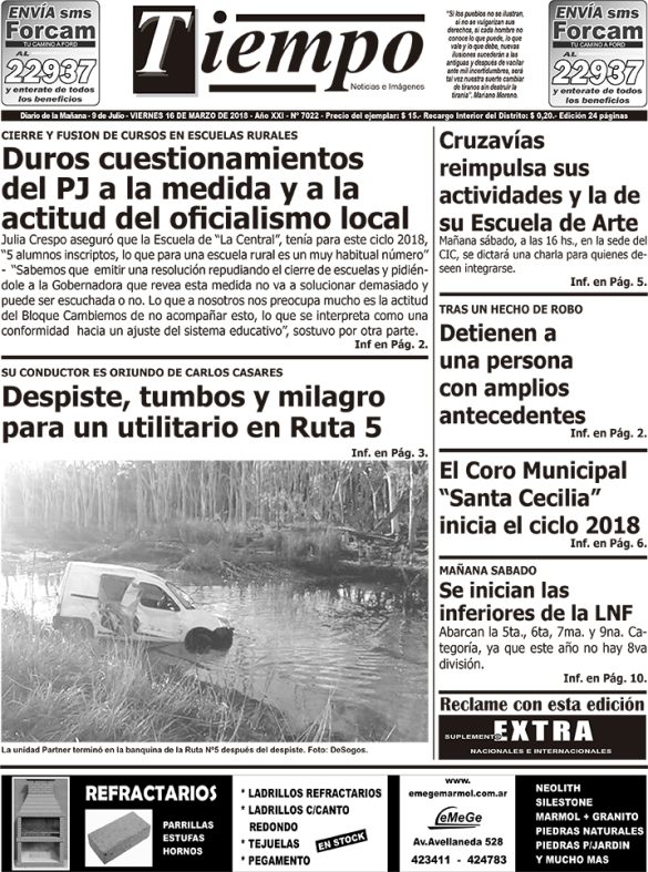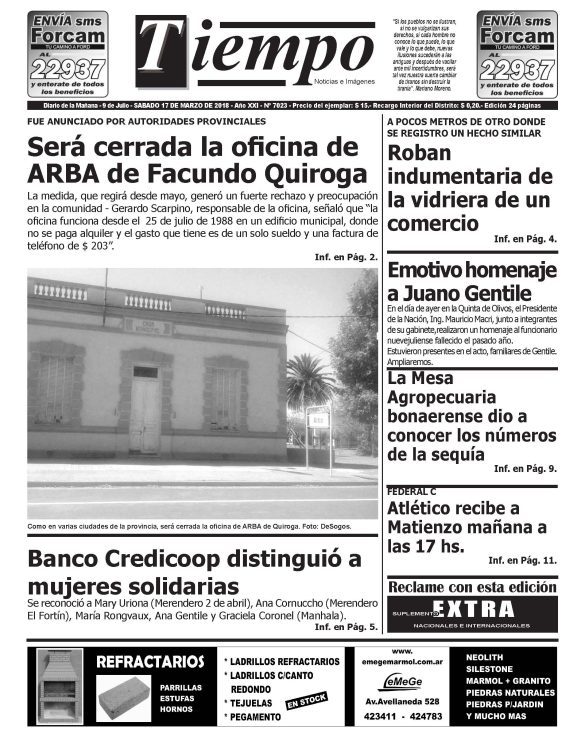 Edición impresa del día jueves 15 de marzo de 2018