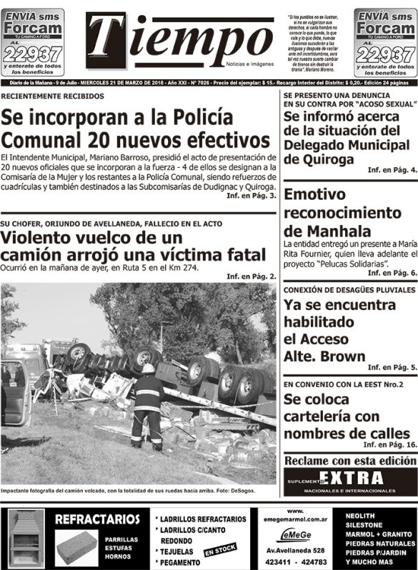 Edición impresa del día miércoles 21 de marzo de 2018